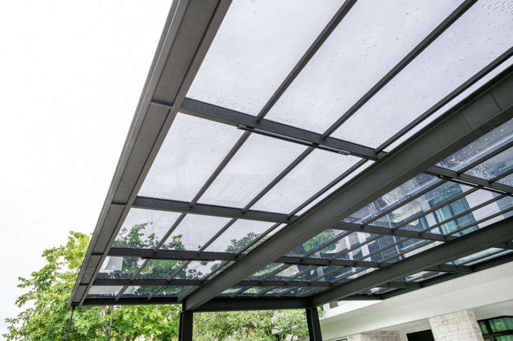 Laminated glass is produced by combining two sheets of glass. Laminated Safety Glass Roof is durable, high-performance and multifunctional. It creates a modern facade and uplift the property’s facade. It is soundproof and protects from direct sun light, harmful UV rays and rainfalls. Its a perfect shade.